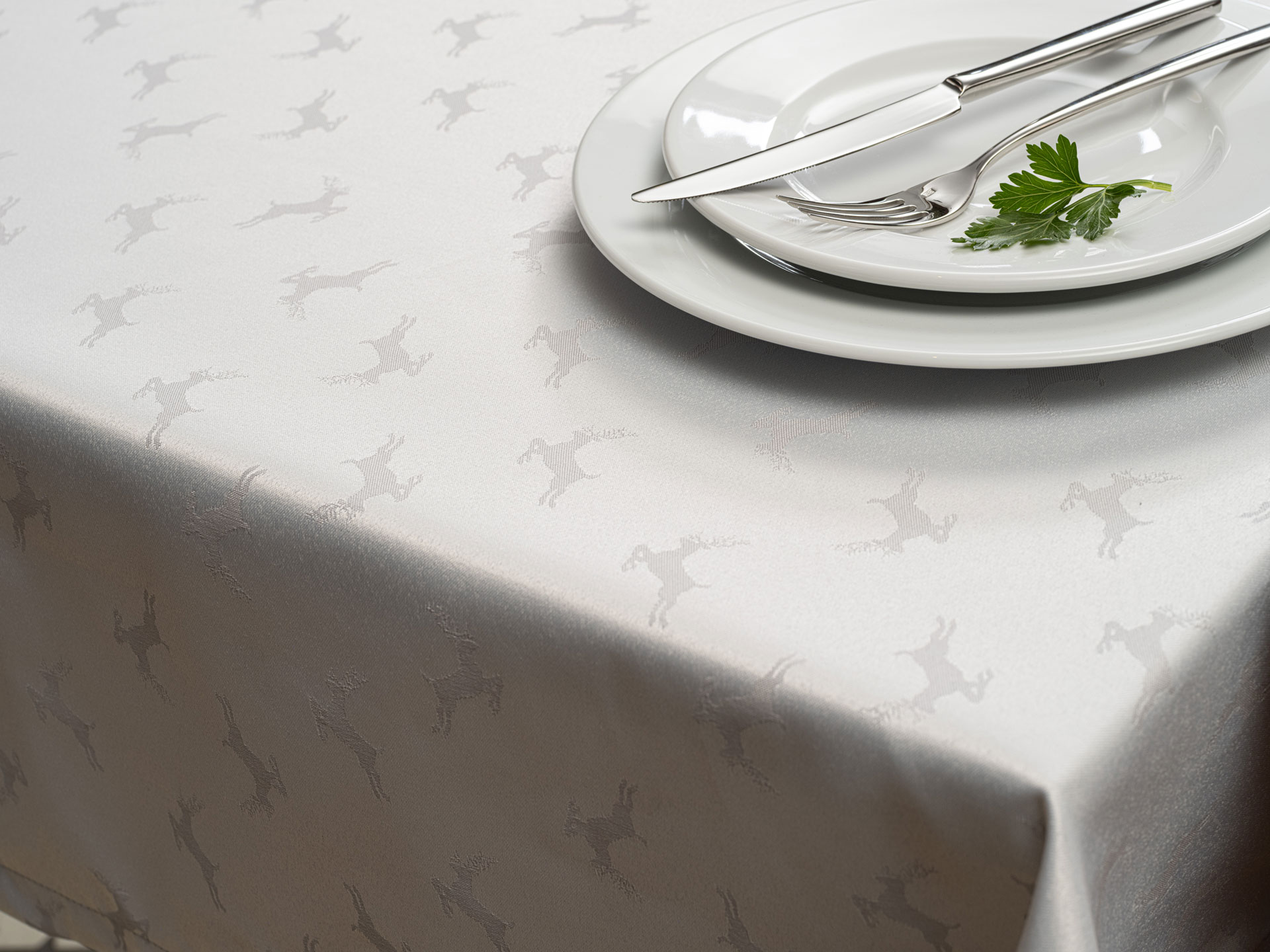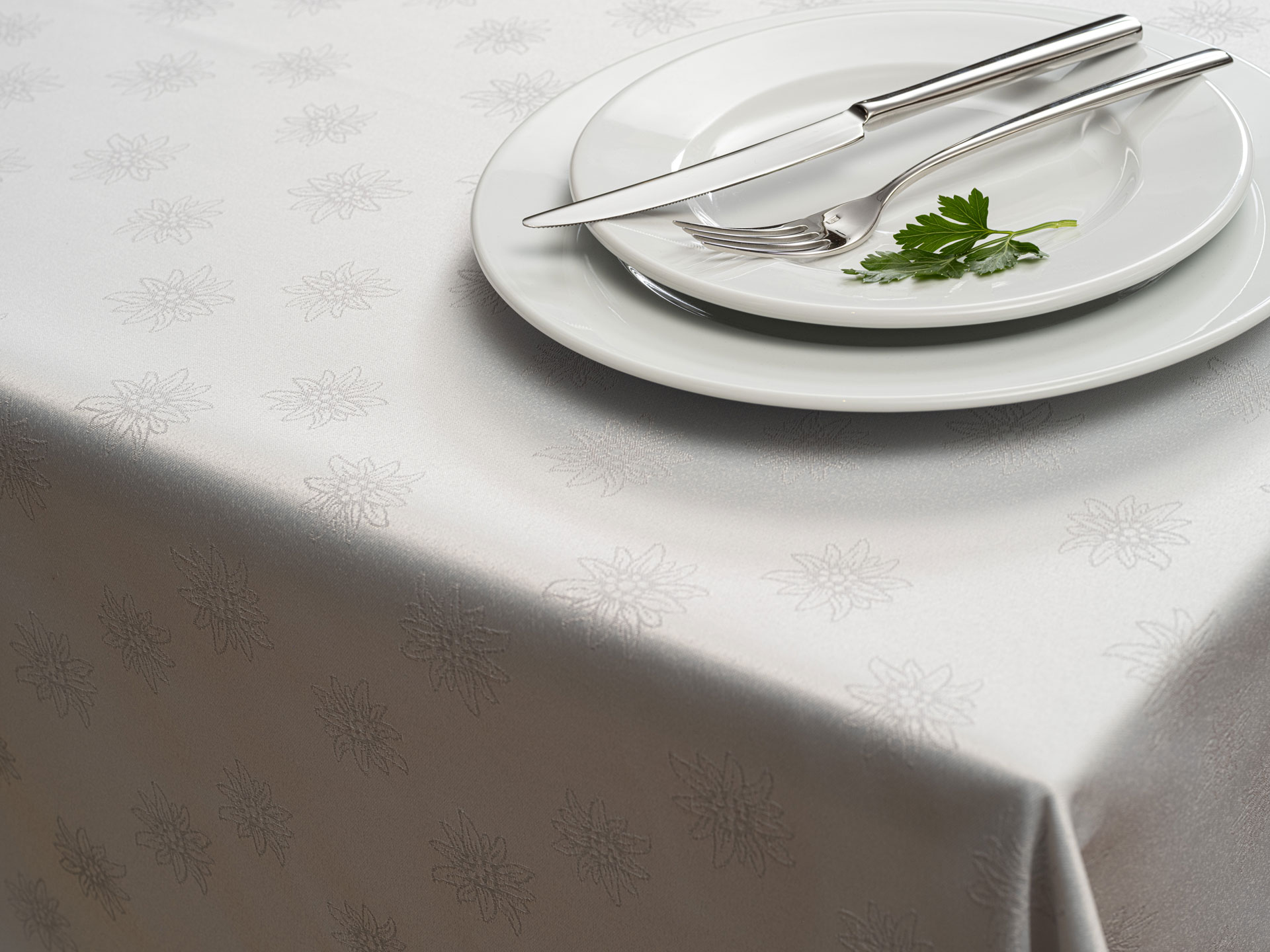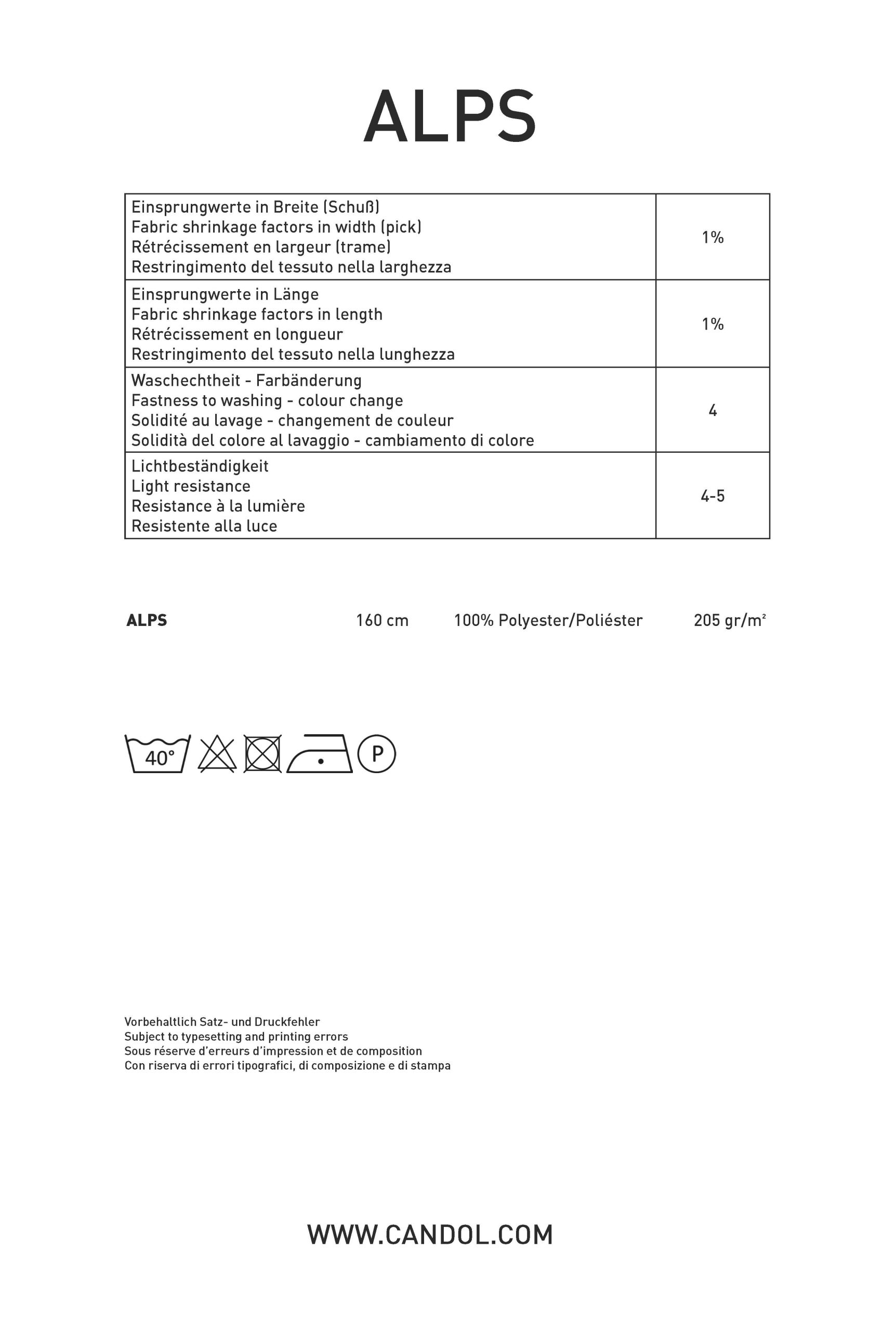 Alps ist in sich gemustert. Sie können wählen zwischen den Motiven Edelweiss und Hirsch. Auf Anfrage ist er auch in Stoffbreite 320 cm erhältlich.
