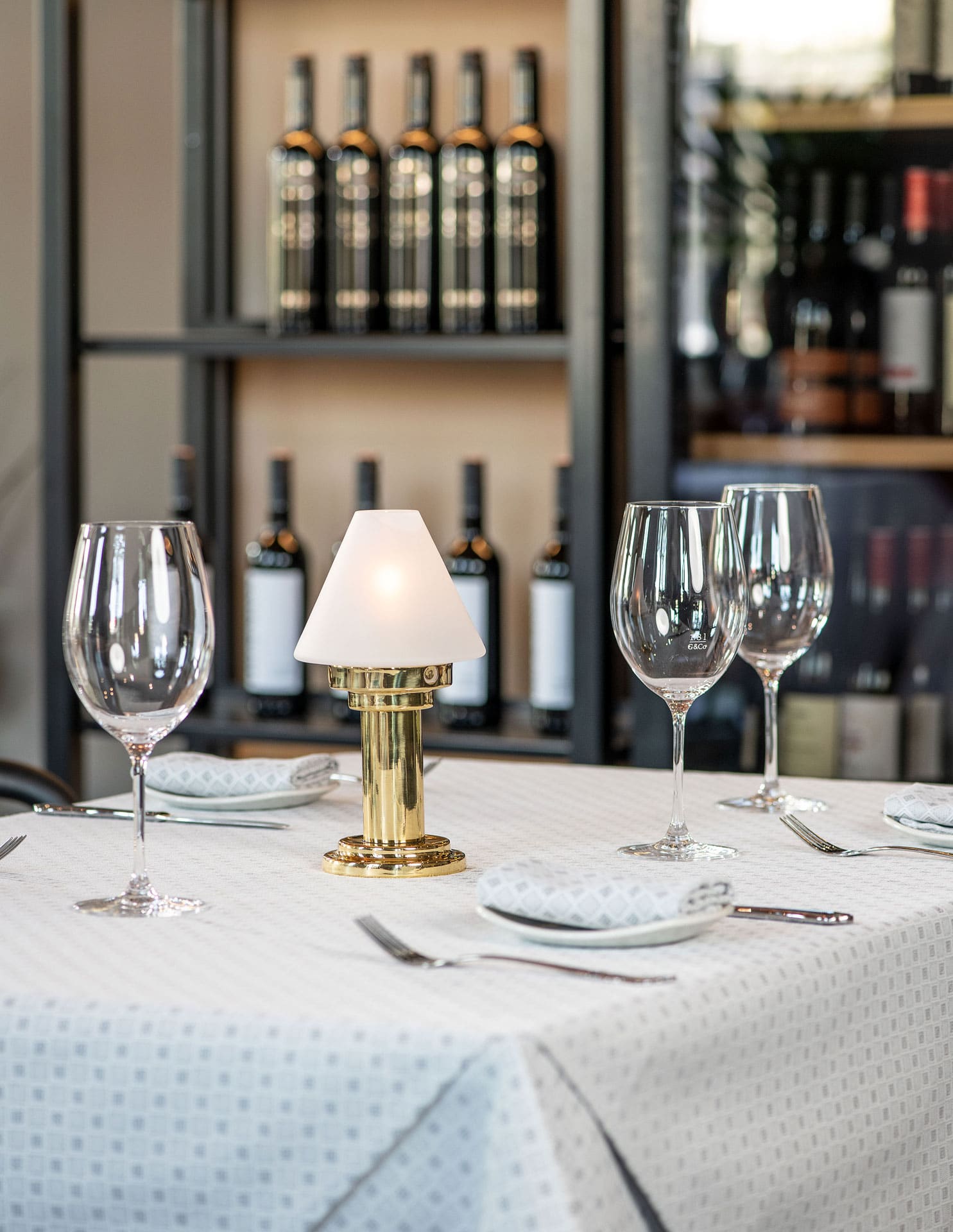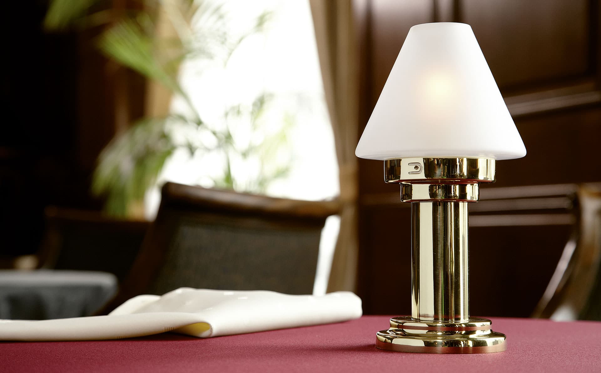 In den edelsten Farben, silber – gold – schwarznickel, erstrahlt sie und lässt alles um sich erblassen. Die Zeit scheint still zu stehen – man genießt den Augenblick – Zweisamkeit am Tisch mit seinem Liebsten – Romantik pur. Die Kombination aus rotem Glas mit dem Fuß in schwarznickel ist sehr beliebt.